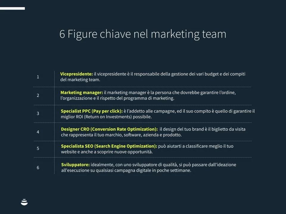 Come deve essere strutturato un marketing team? Quali figure sono indispensabili per il corretto funzionamento del team?