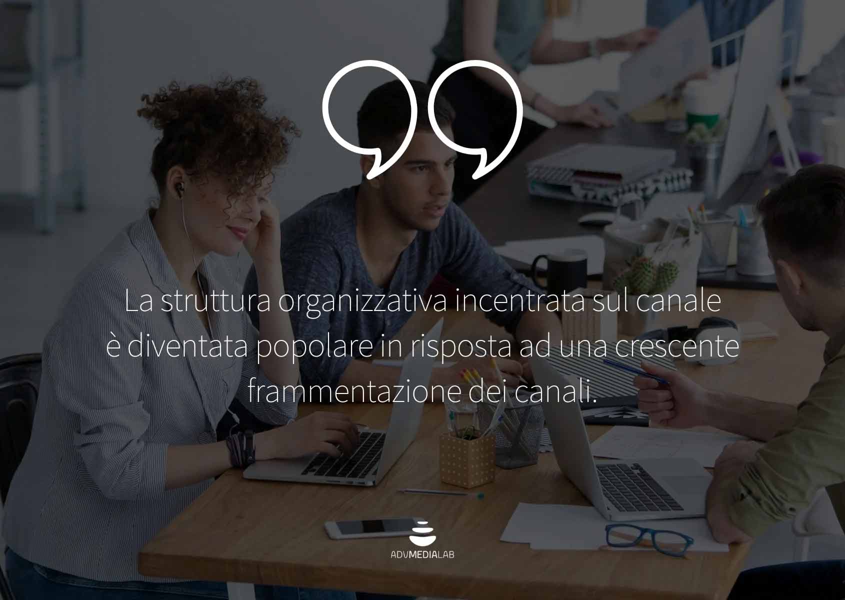 La struttura organizzativa incentrata sul canale è diventata popolare in risposta ad una crescente frammentazione dei canali .