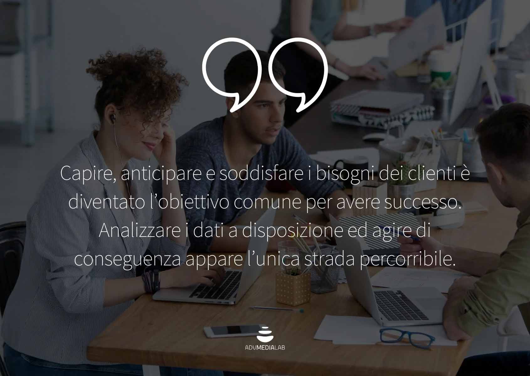 Capire, anticipare e soddisfare i bisogni dei clienti è diventato l’obiettivo comune per avere successo . Analizzare i dati a disposizione ed agire di conseguenza appare l’unica strada percorribile.