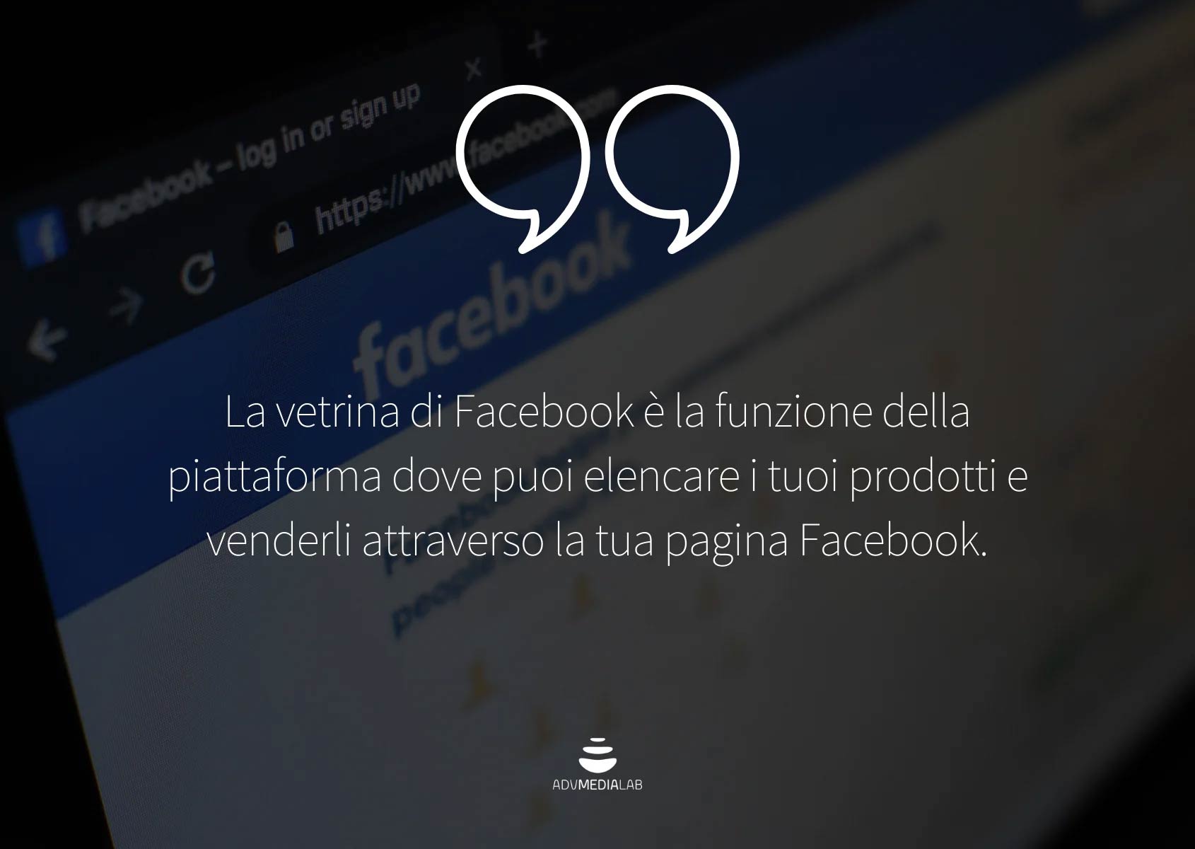 La vetrina di Facebook è la funzione della piattaforma dove puoi elencare i tuoi prodotti e venderli attraverso la tua pagina Facebook . Questo significa che potrai arrivare al tuo pubblico in maniera molto più facile e diretta per raggiungere poi una base enorme di clienti potenziali.