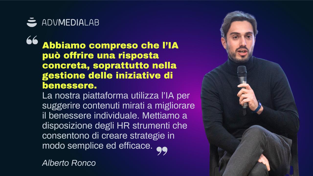 In effetti, partire con una strategia ben definita è essenziale in qualsiasi attività, e abbiamo visto come l’IA possa supportare gli HR proprio in questo. Ad esempio, abbiamo integrato un modello di linguaggio avanzato (LLM), in collaborazione con OpenAI, che consente di interagire direttamente con le aziende e gli HR, analizzare quanto fatto in passato e gli obiettivi aziendali, e proporre una prima bozza di strategia di wellbeing. Ovviamente, l’intervento umano resta centrale per concretizzare queste proposte, ma questo strumento offre una guida iniziale al processo da seguire.